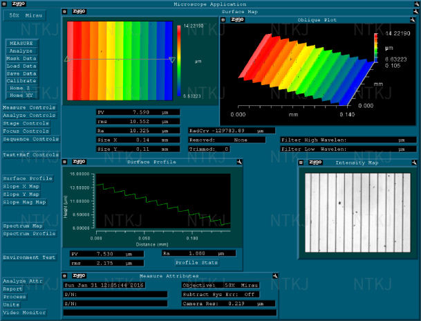 DOE measurements taken with Zygo NewView